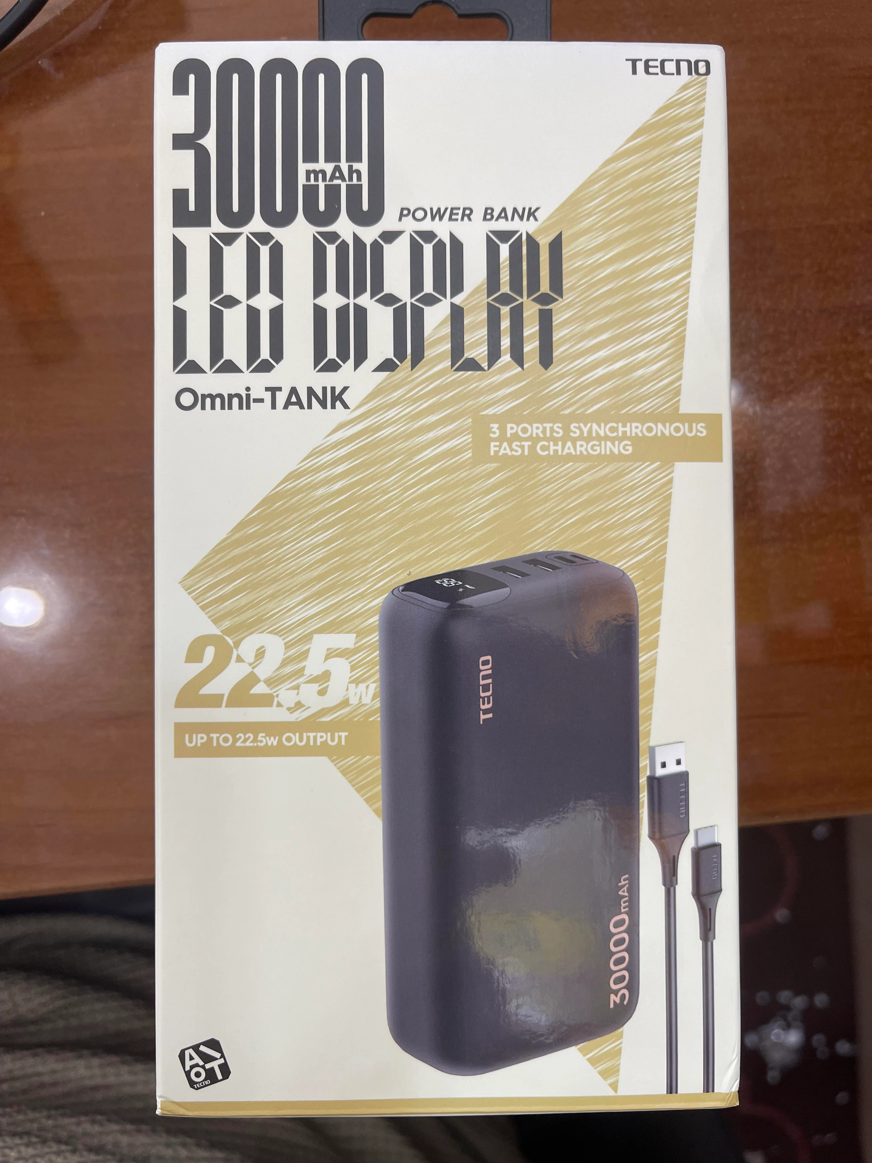 پاوربانگ 30هزار تکنو با صفحه نمایش LED برای نشان دادن مقدار شارژ با قدرت شارژ 22.5 وات و با خاصیت شارژ سریع با استفاده از پاور بانک 30هزار تکنو شما میتوانید حداقل 3 الی 5 گوشی را شارژ نمایید